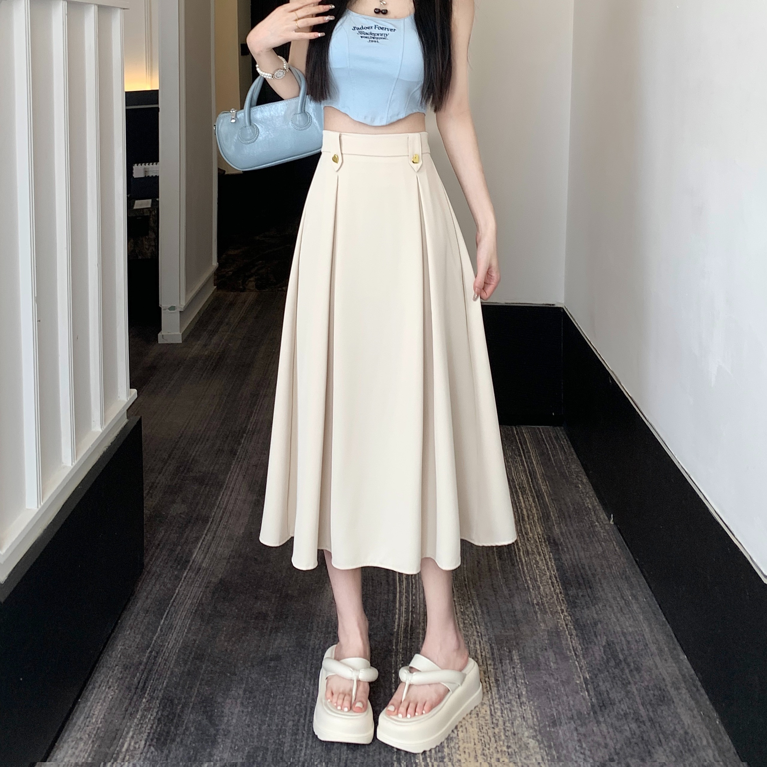 高级感黑色高腰西装百褶半身裙女春季小个子显瘦遮胯a字裙子长裙