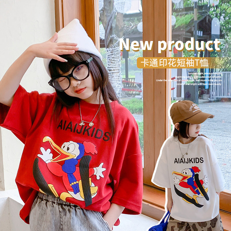 童装女童夏装短袖T恤新款宽松卡通印花儿童女孩夏季潮服大童帅气