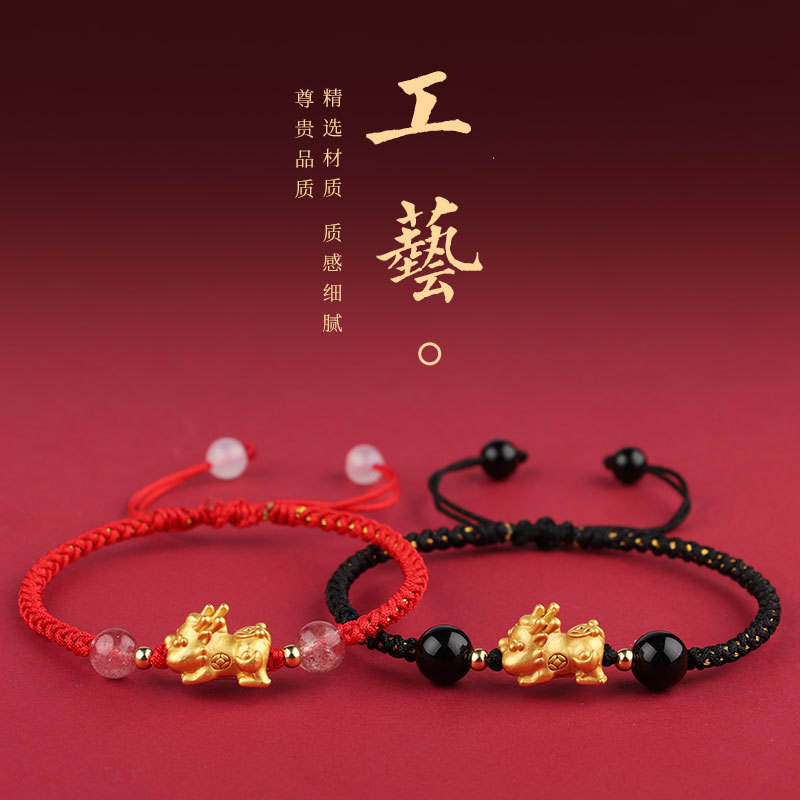 S999足银貔貅纯手工编织红绳手链宝宝招财转运珠本命年情侣手绳