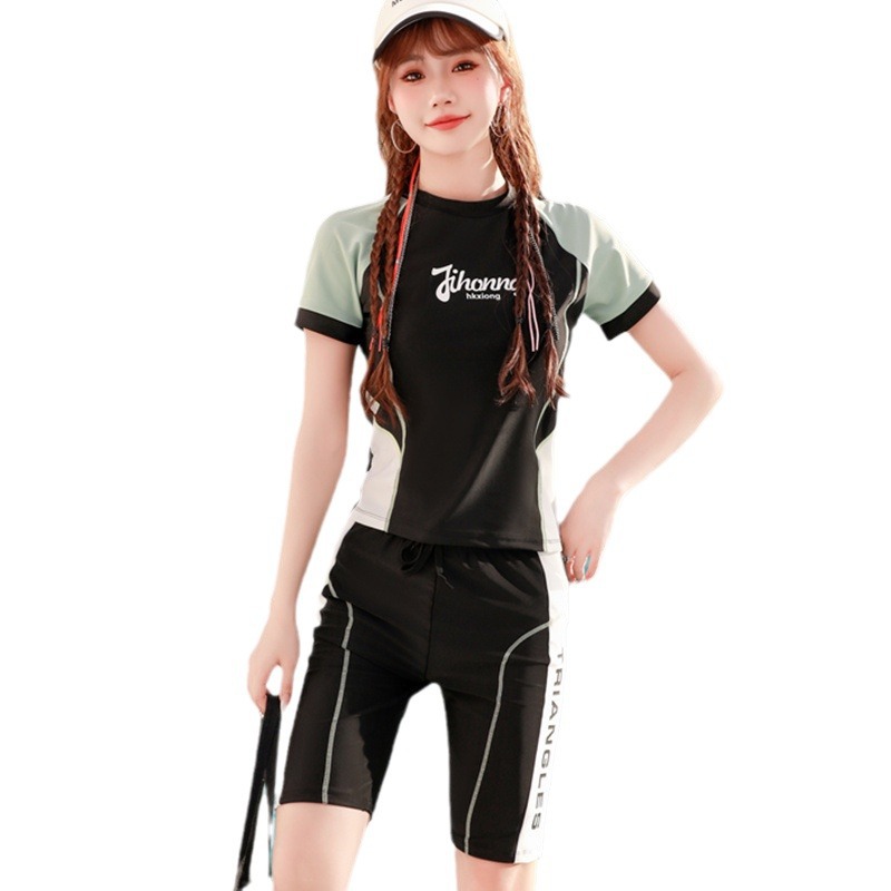 新款运动潜水服分体两件套保守显瘦遮肚游泳衣女长腿裤温泉游泳装