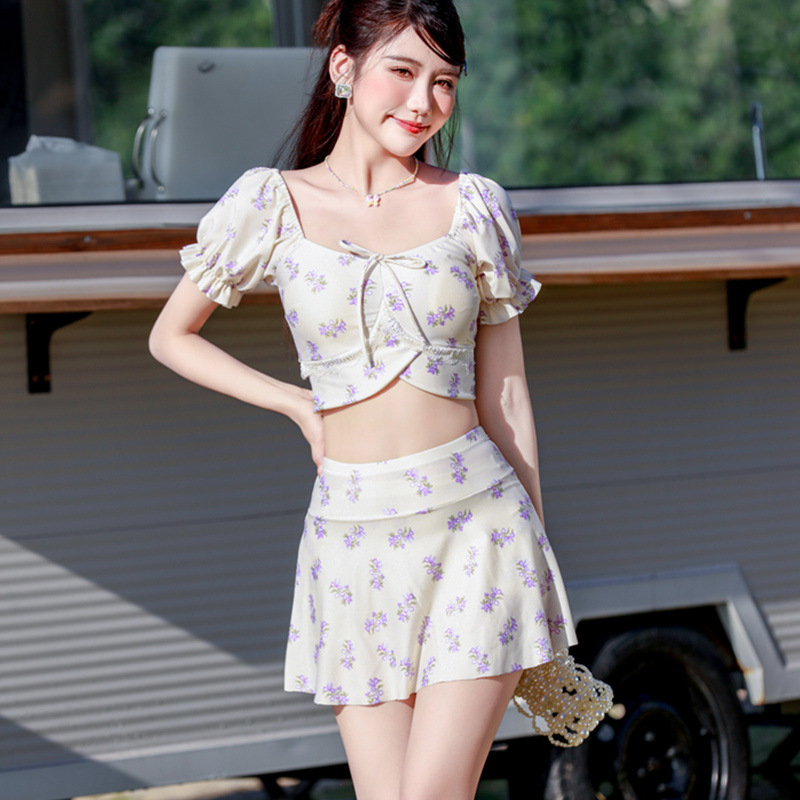 新款游泳衣女分体两件套保守显瘦遮肚性感小清新少女温泉泳装