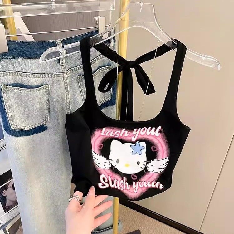 女童夏装背心吊带宝宝洋气儿童个性潮韩版可爱卡通短款挂脖露脐装