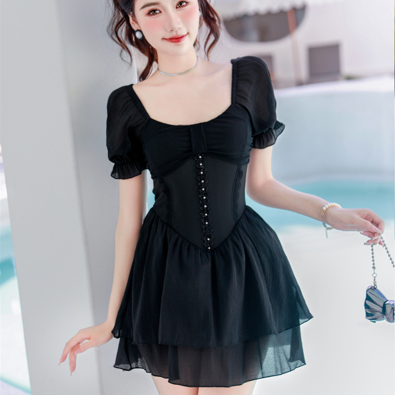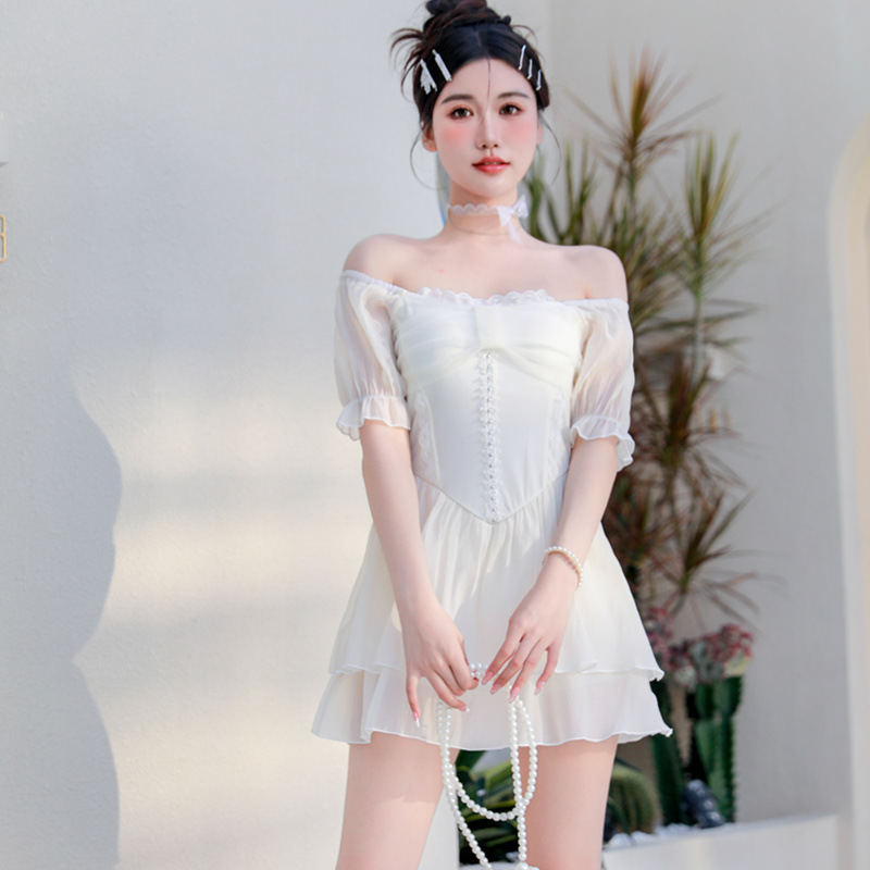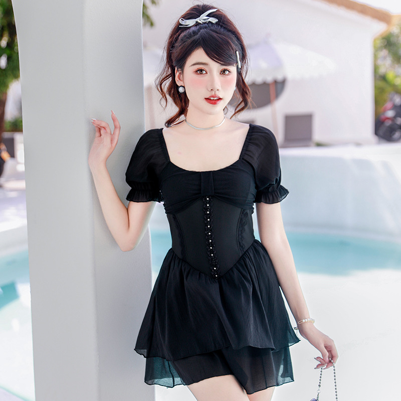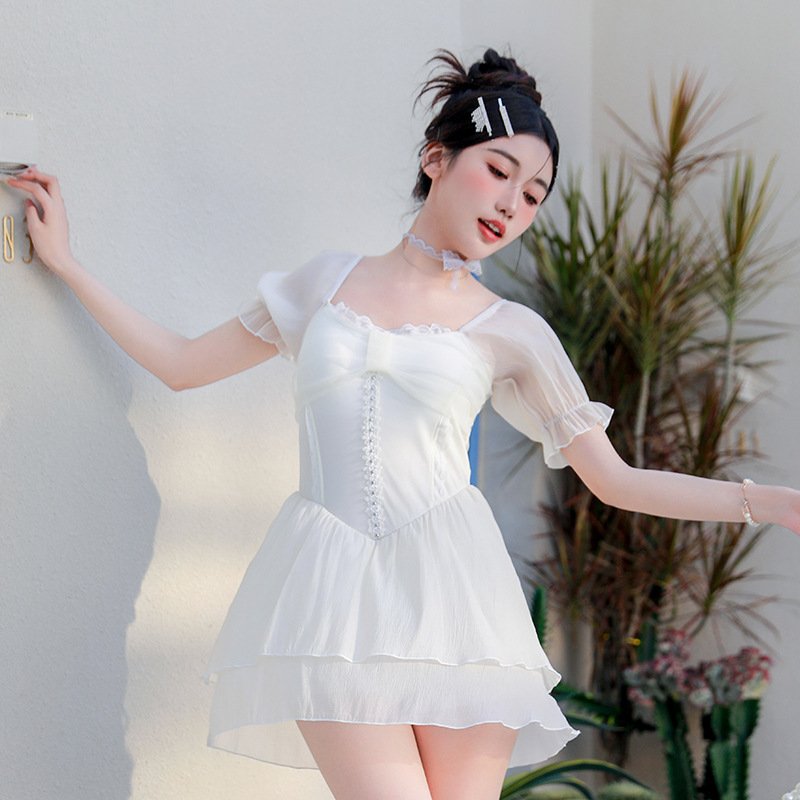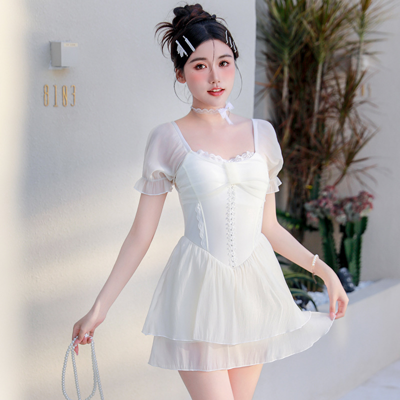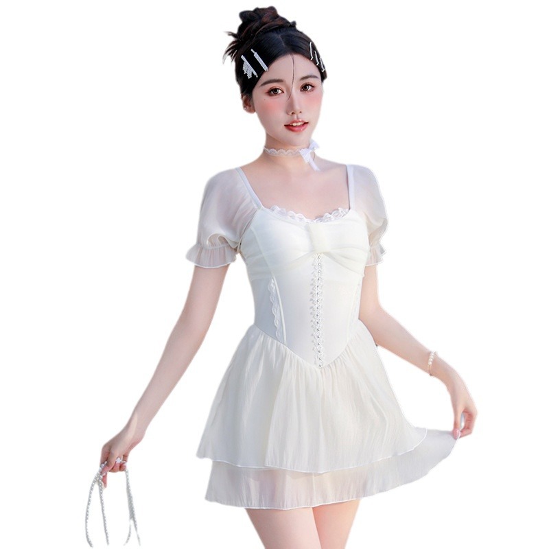 仙气游泳衣女连体平角保守显瘦遮肚性感温泉高级感学生蕾丝泳装