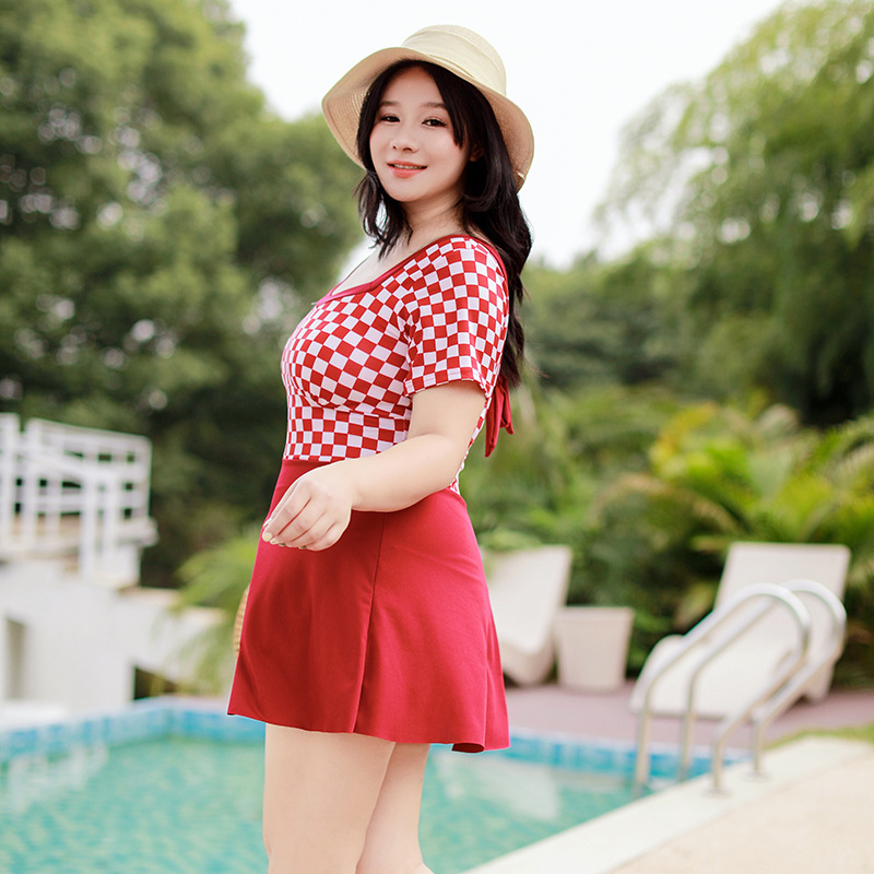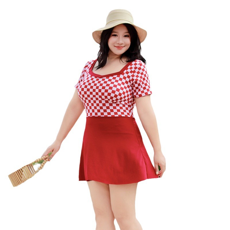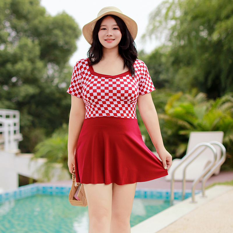 新款大码胖mm遮肉连体泳衣女温泉裙式保守显瘦大码胖女孩泳装