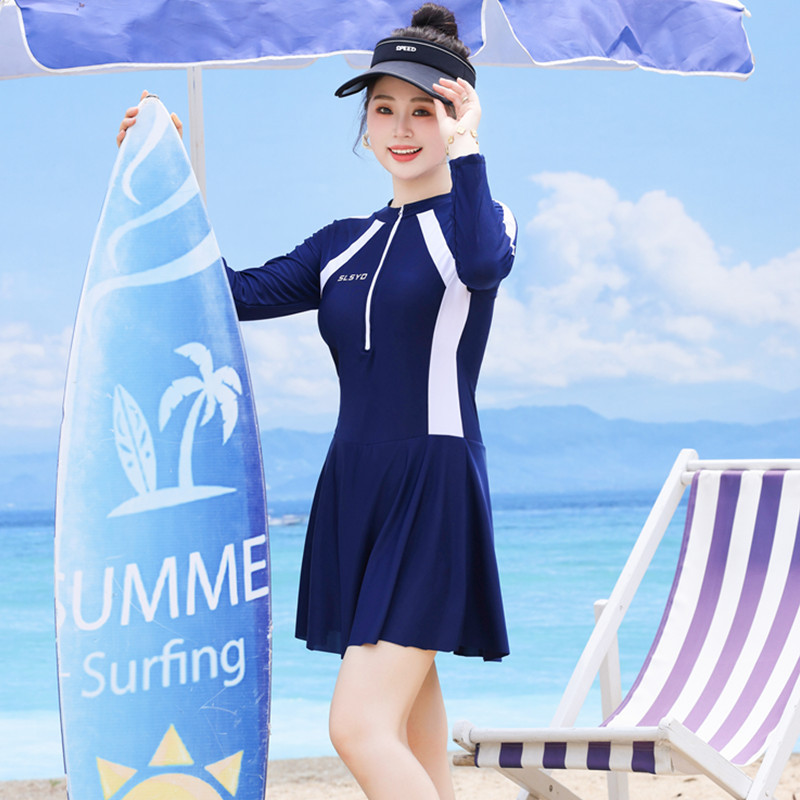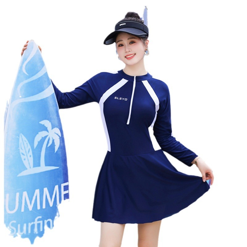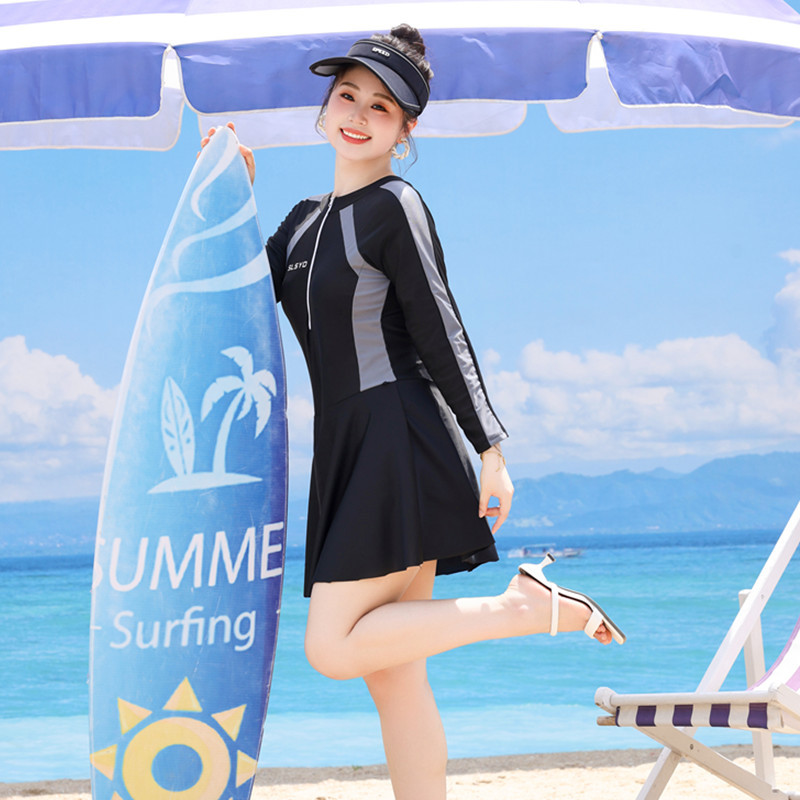 新款加大码胖妹胖妞温泉游泳衣女运动长袖保守显瘦遮肚加肥泳装女