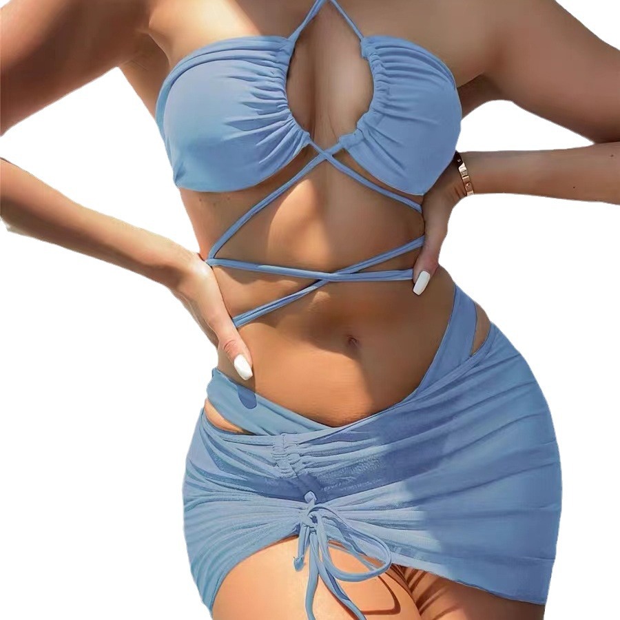 比基尼bikini性感温泉游泳衣女三件套分体韩国度假海边外贸泳装女