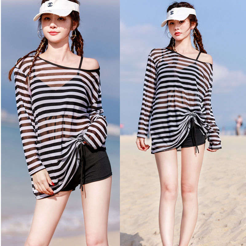 韩版ins风分体三件套运动泳衣女夏季罩衫防晒显瘦遮肚泡温泉泳装