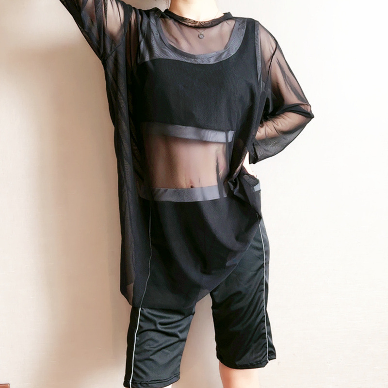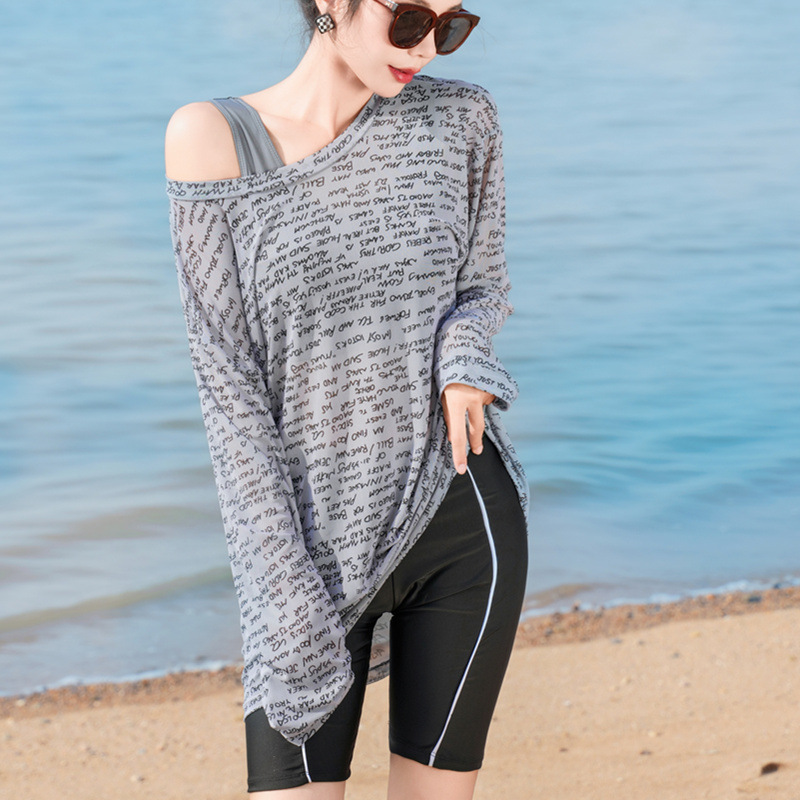 新款泳衣女分体运动三件套罩衫宽松大码长袖防晒遮肚显瘦泳