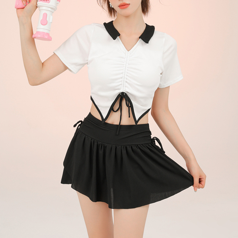 韩版性感分体泳衣学生女士裙式平角学院风运动高腰显瘦温泉游泳装