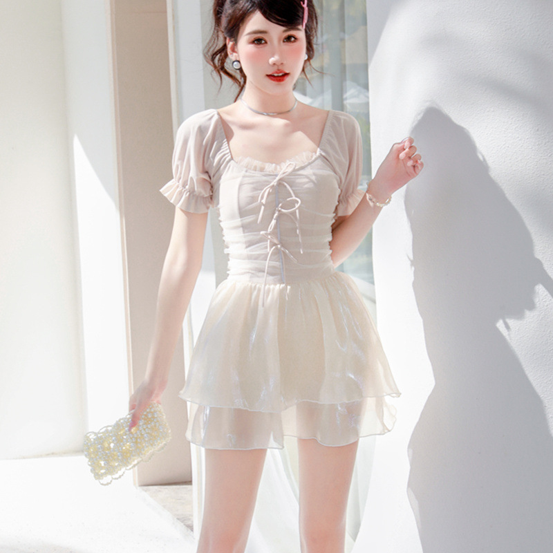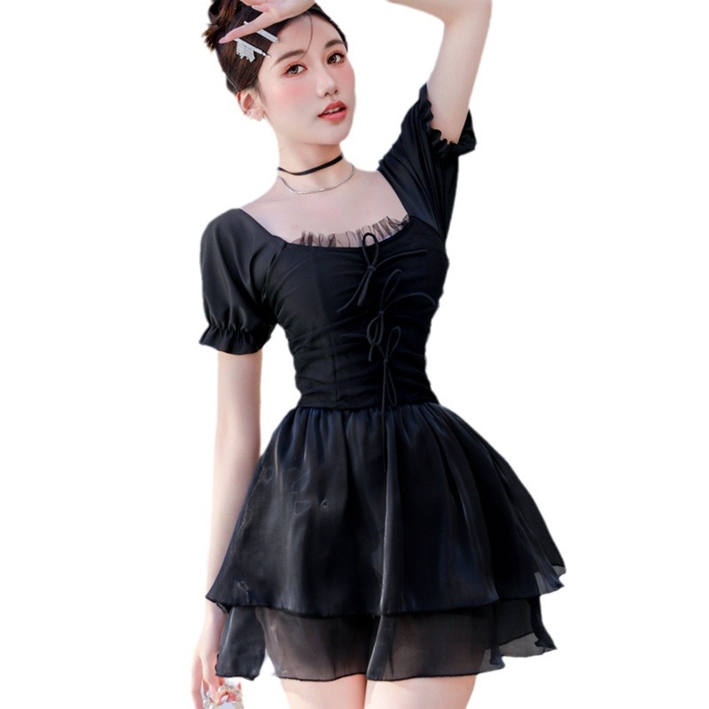 [复古宫廷】仙气游泳衣女收腰修身高腰蕾丝温泉保守遮肚显瘦泳装