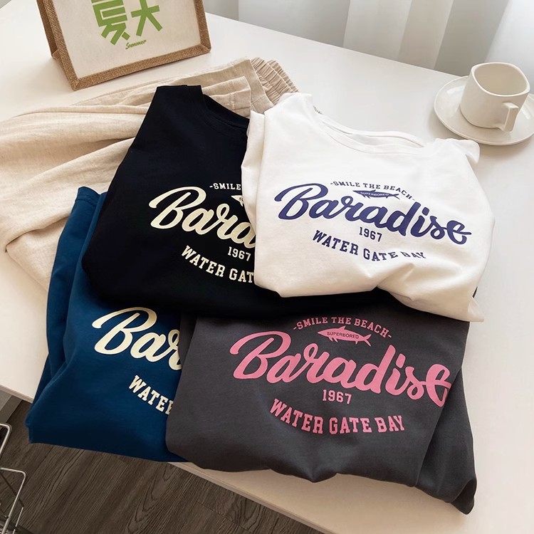 美式字母印花圆领短袖T恤女宽松显瘦纯棉休闲百搭学生上衣夏