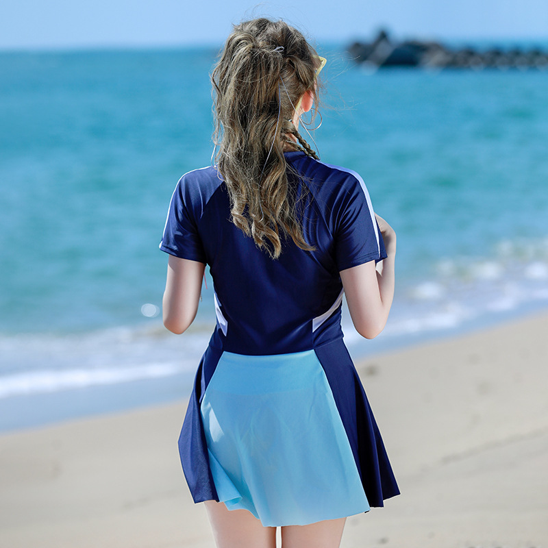 新款游泳衣女连体平角保守显瘦遮肚韩国温泉运动拼色学生泳装