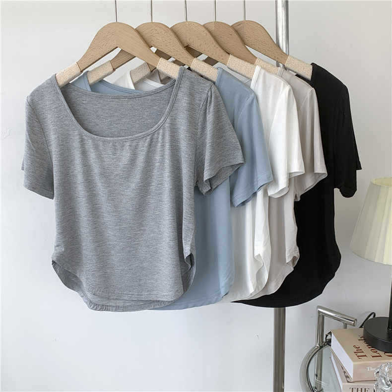 夏季新款POLO翻领灰色短袖t恤女设计感双拉链正肩短上衣ins潮