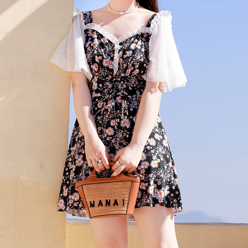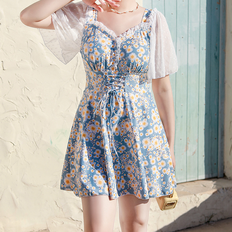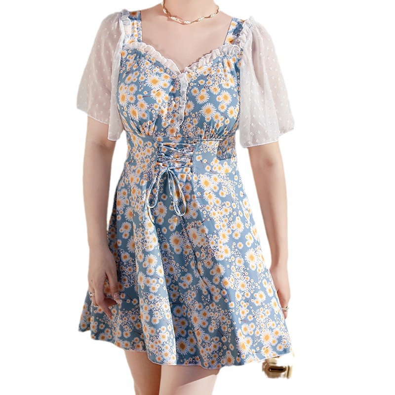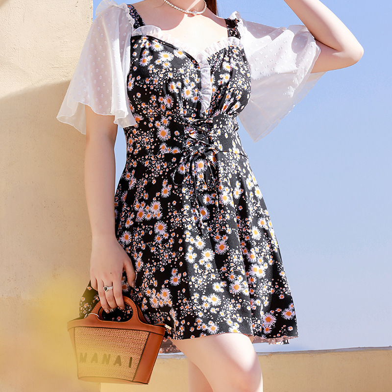 新款泳衣女连体平角保守显瘦遮肚韩版加肥大码胖妹泡温泉泳装