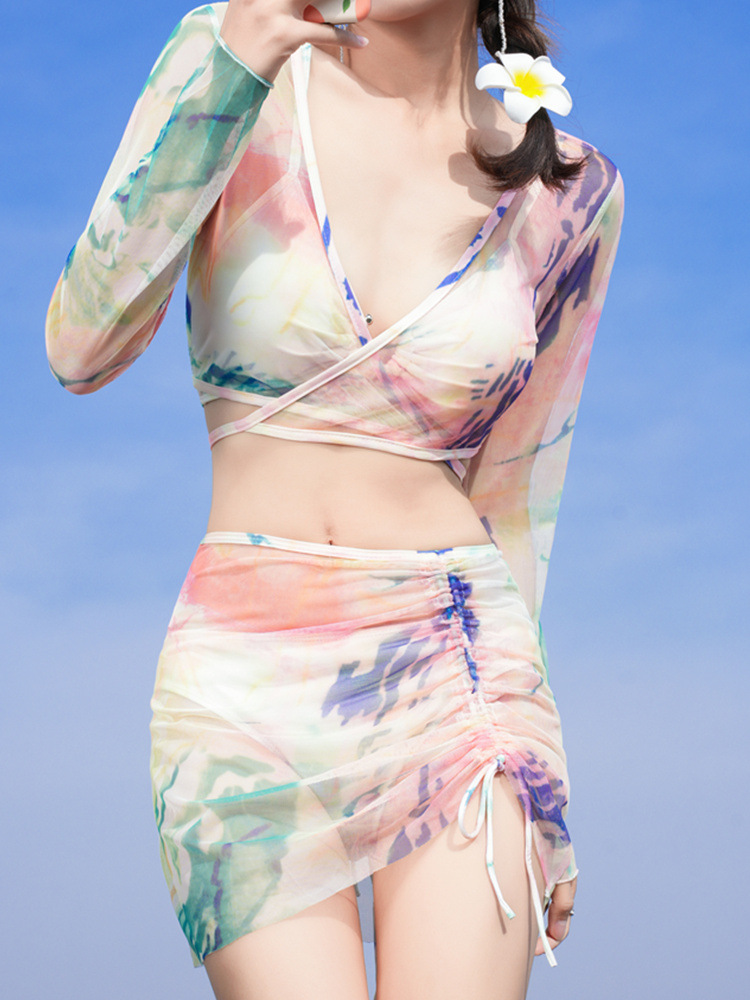 泳衣女新款网红风纯欲性感显瘦比基尼三件套bikini泡温泉泳装
