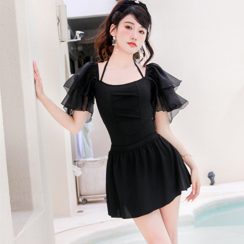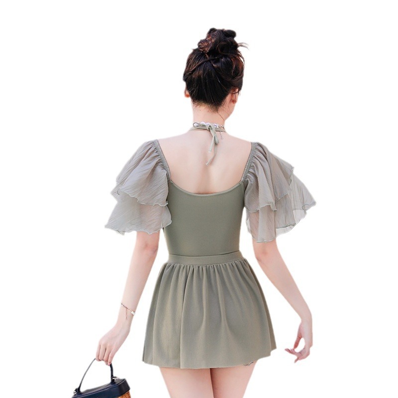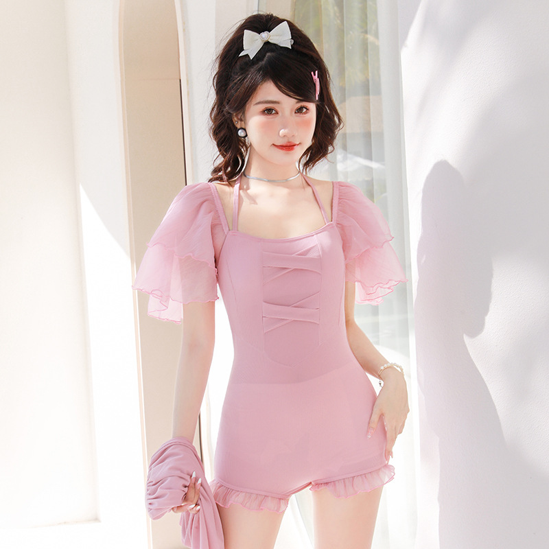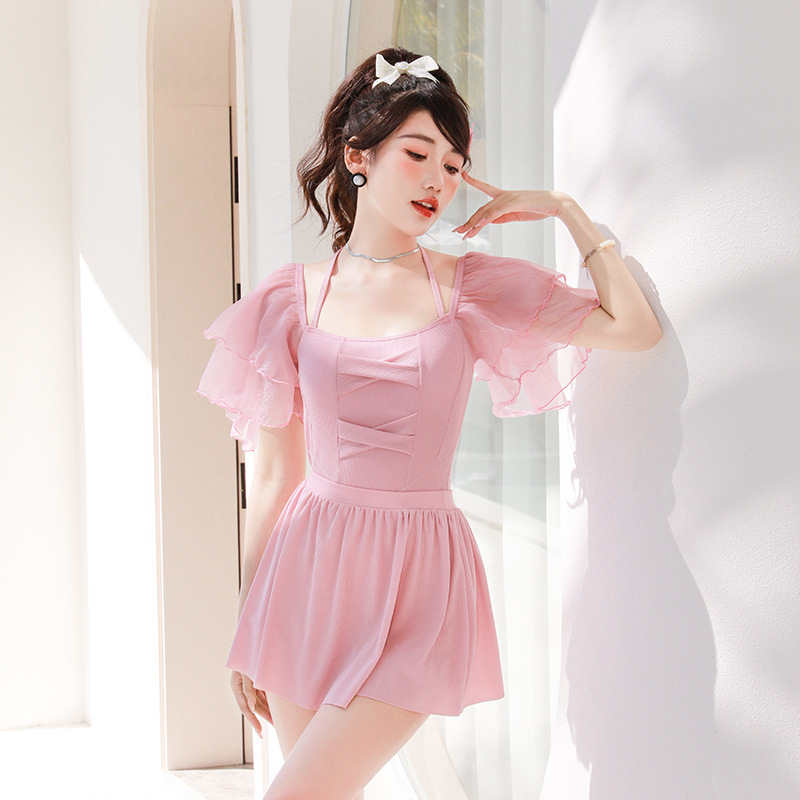 【粉系少女】新款游泳衣女连体平角裙式温泉两穿小清新学生泳装