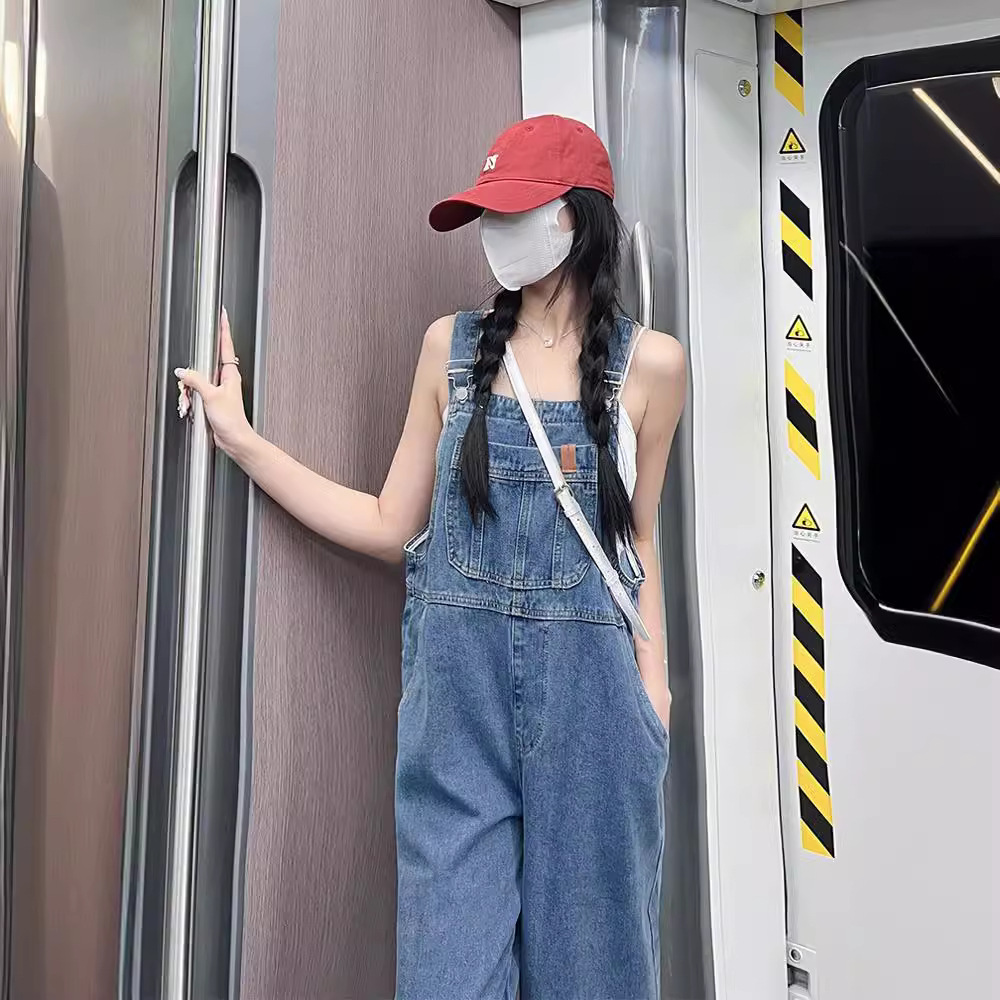 牛仔背带裤女春夏薄款新款小个子连体裤设计感小众宽松阔腿裤