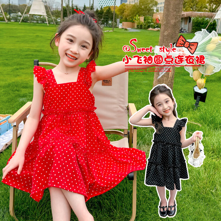 女童连衣裙夏装新款儿童中小童波点飞袖背心宝宝夏季圆点裙子