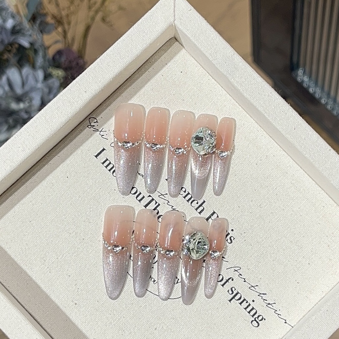 穿戴甲手工秋冬爆闪猫眼堆钻法式手绘花花纯欲氛围感可拆卸穿戴甲
