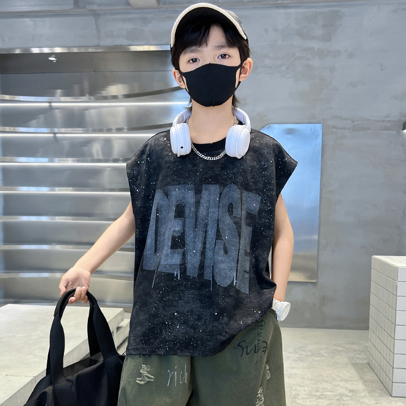 男童无袖T恤夏季薄款新款中大童夏装男孩夏天纯棉儿童背心潮t