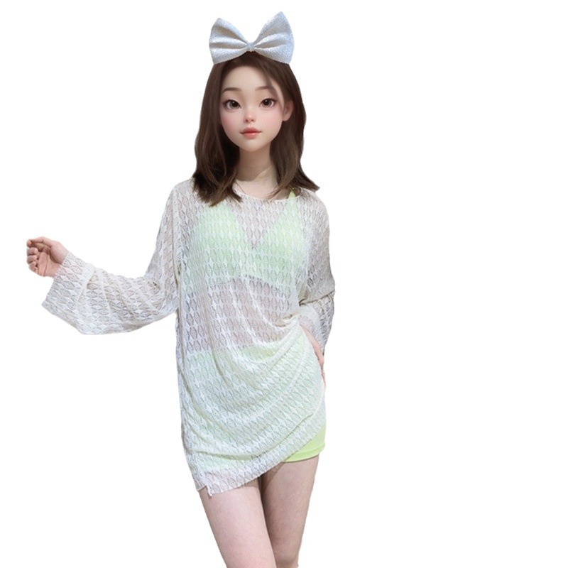 仙气泳衣女bikini比基尼分体平角性感罩衫三件套温泉海边度假泳装