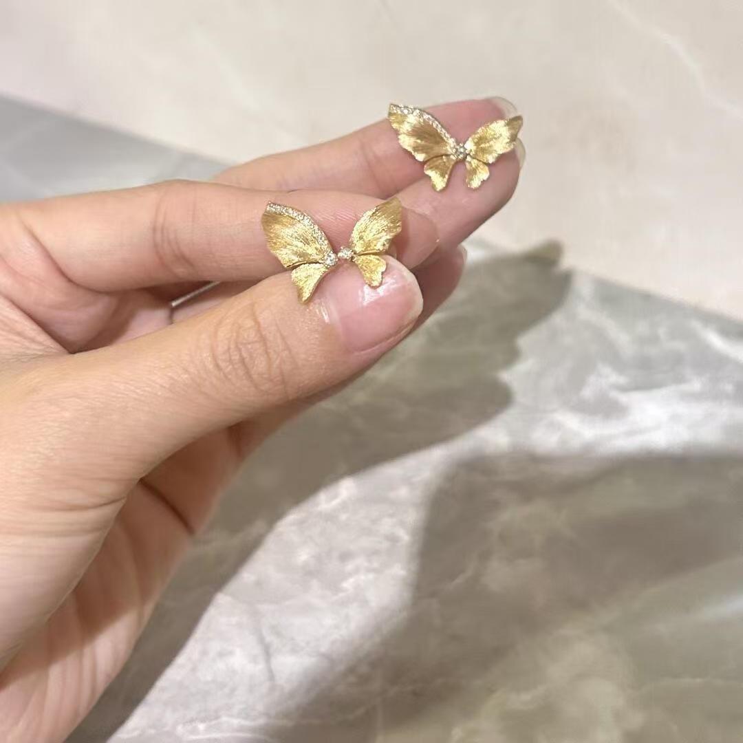 小红书爆款魔链金色拉丝蝴蝶耳钉女新款气质闪钻耳饰一件代发
