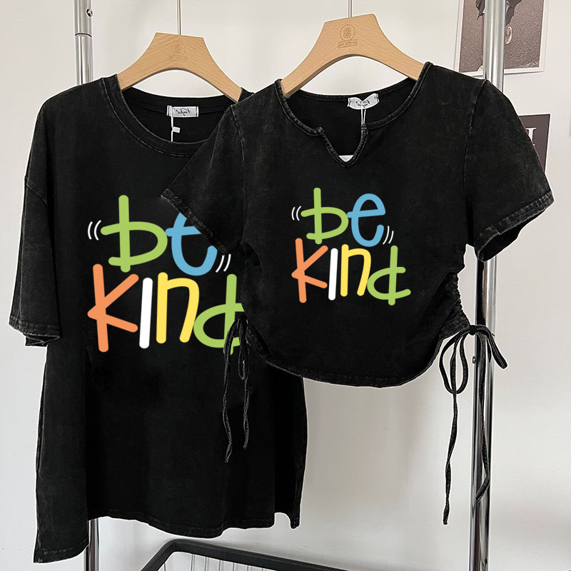 美式复古t恤纯棉短袖女v领修身短款情侣装夏装大码别致甜辣上衣潮