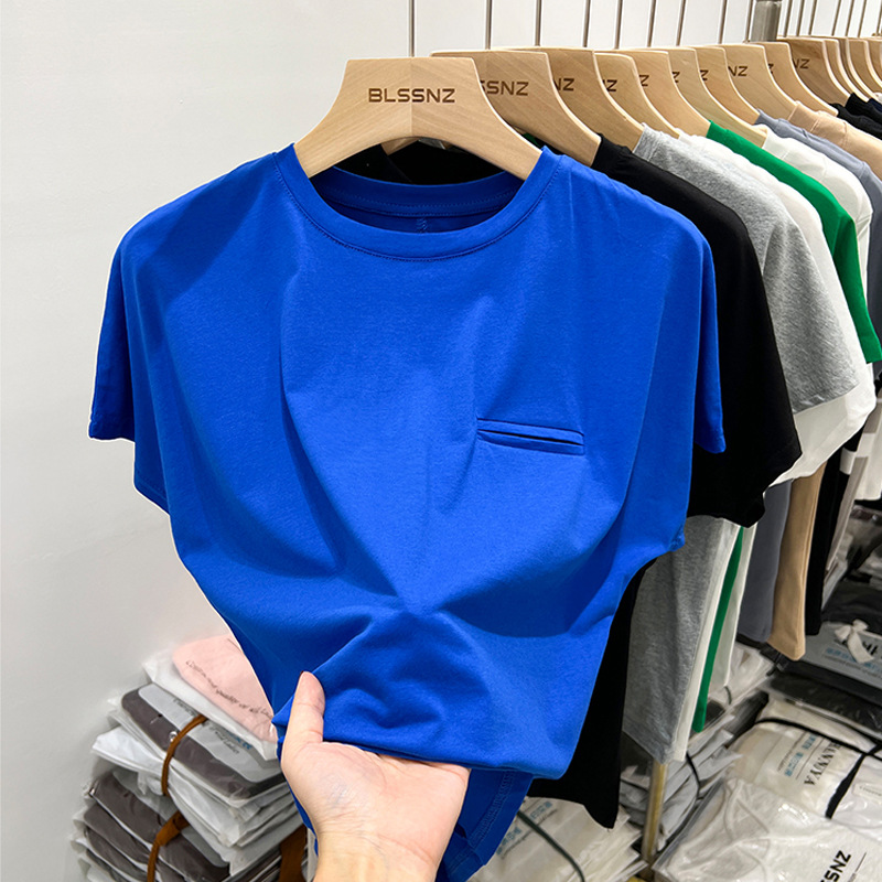正肩短袖t恤女纯棉设计感小众夏季新款时髦洋气宽松上衣体恤