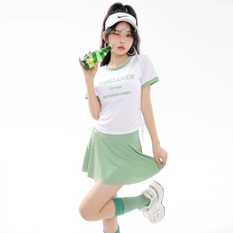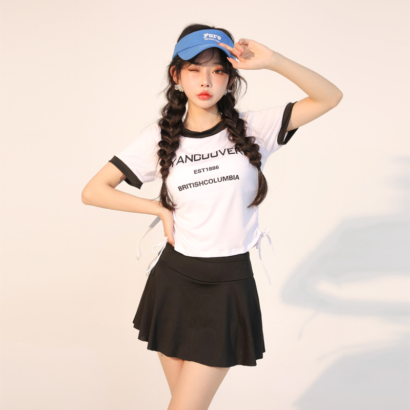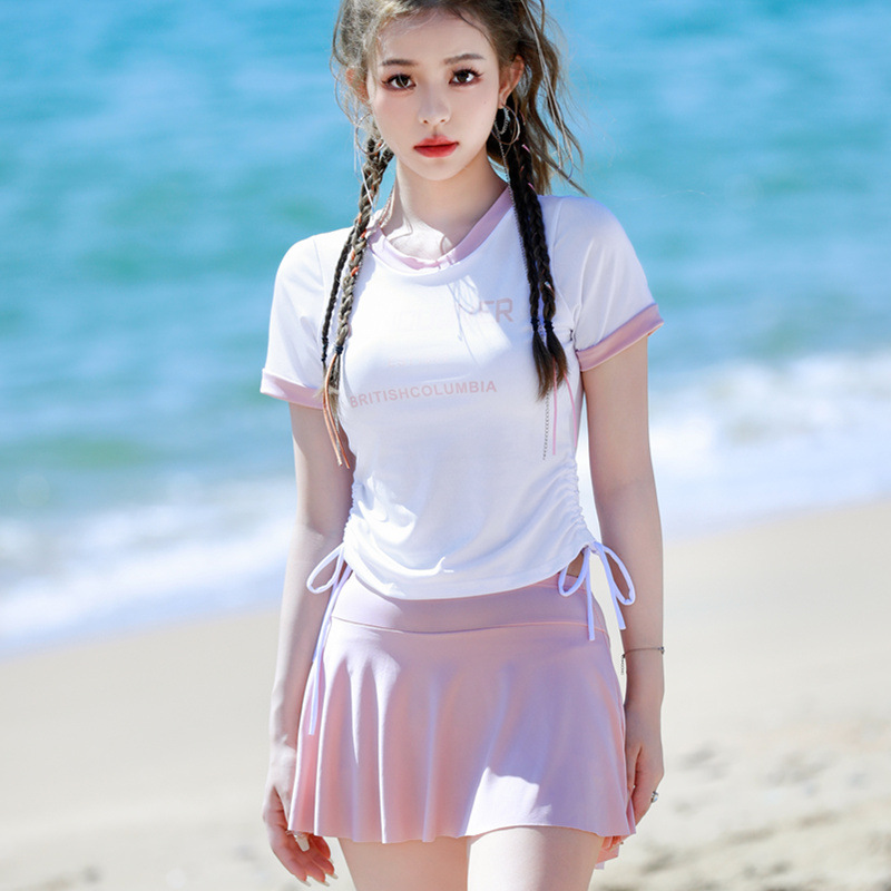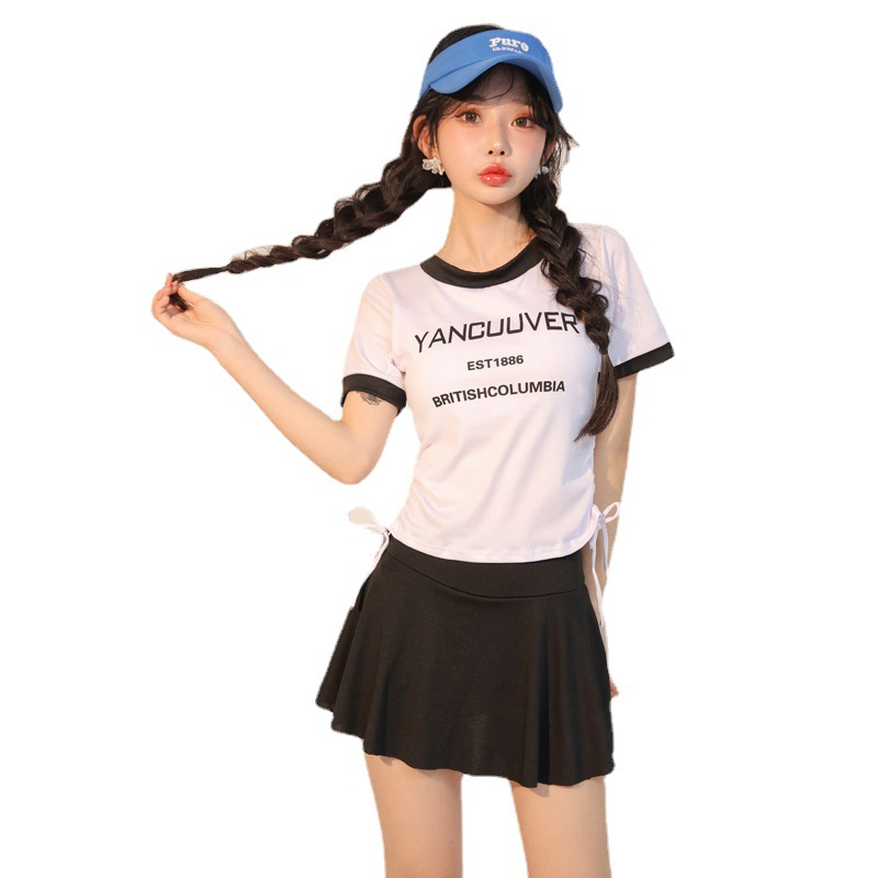 韩版性感分体泳衣学生女士裙式平角学院风运动高腰显瘦温泉游泳装
