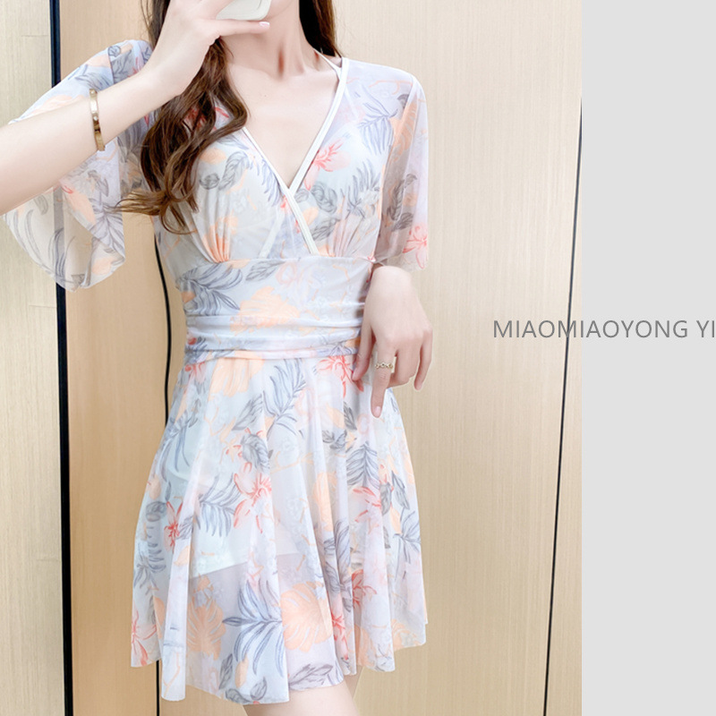 [文艺姐姐】新款游泳衣女连体平角保守显瘦遮肚韩版大码长袖泳装