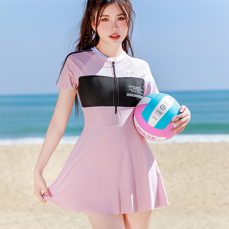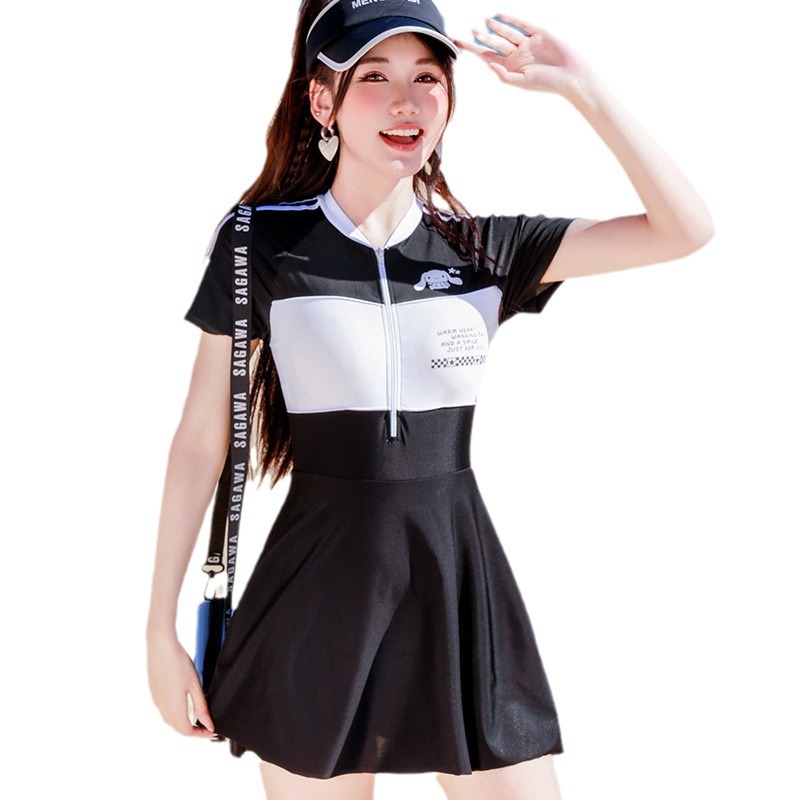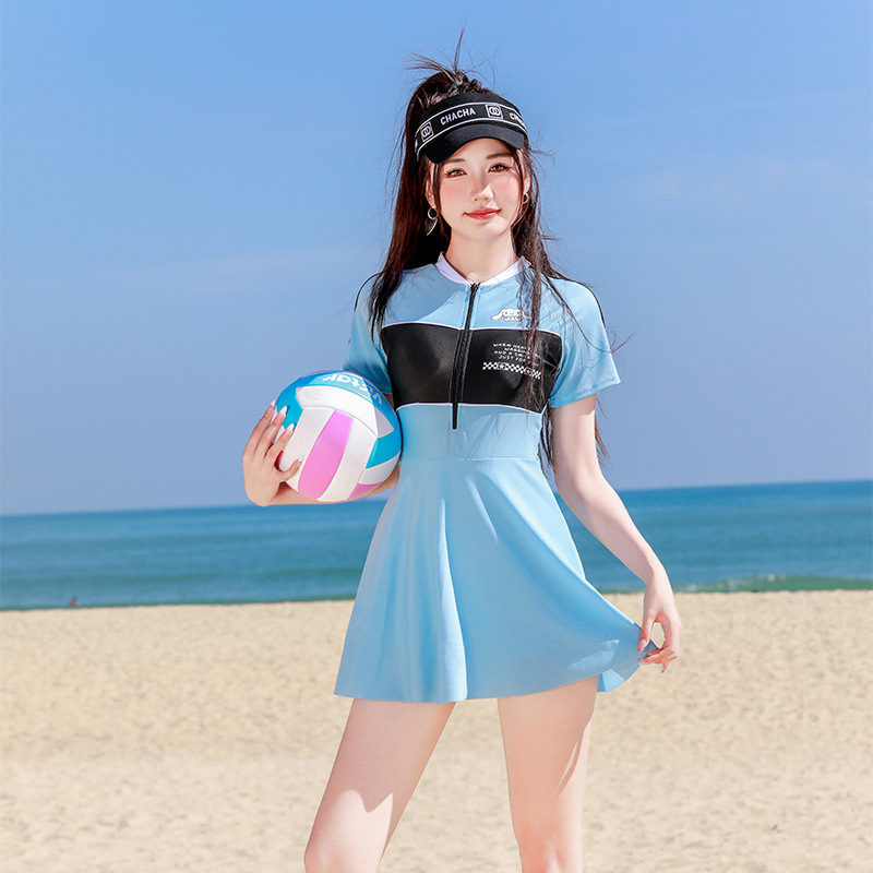 新款游泳衣女连体平角保守显瘦遮肚温泉少女运动训练泳装女