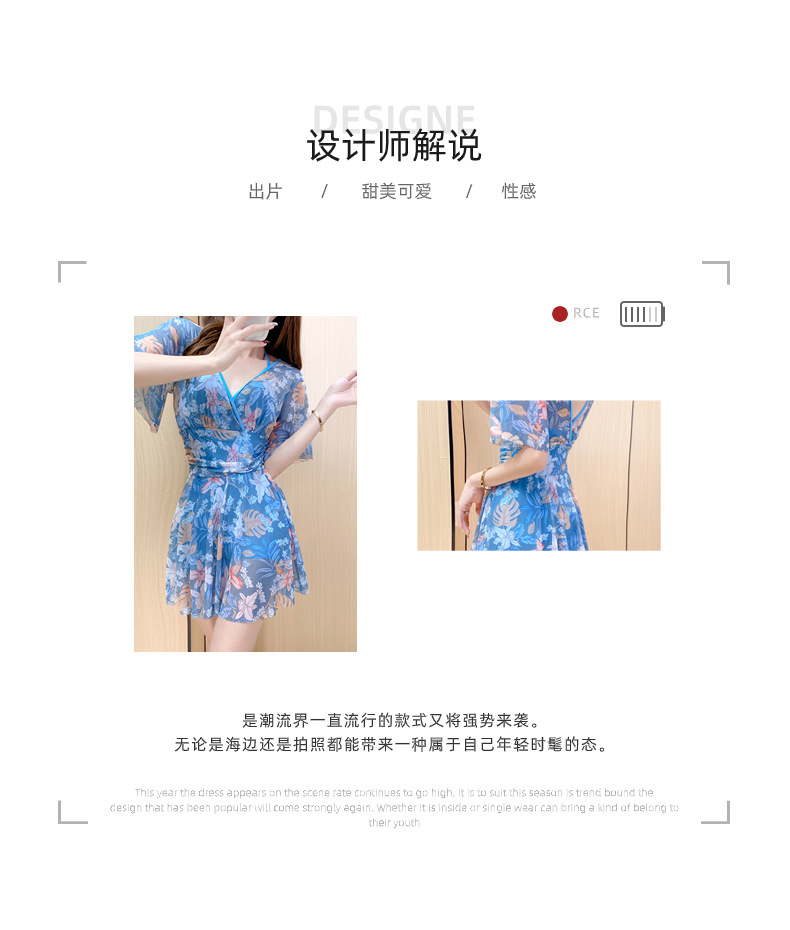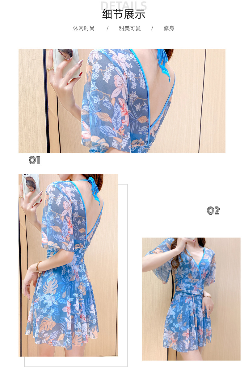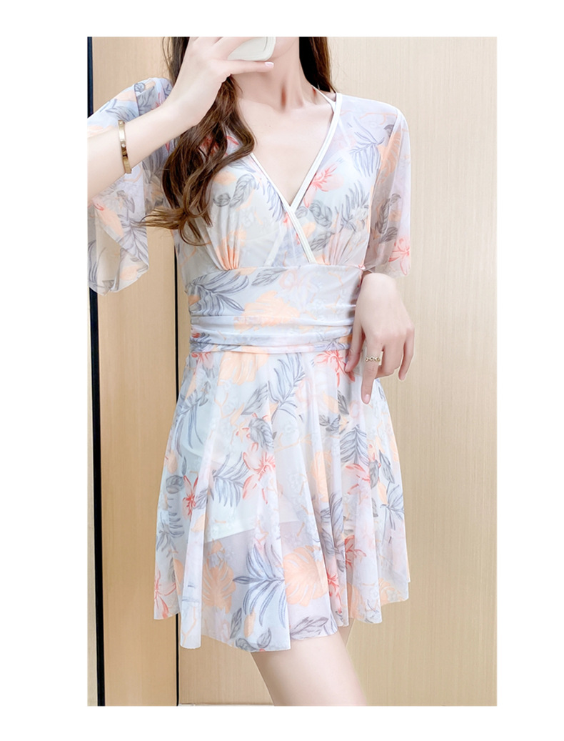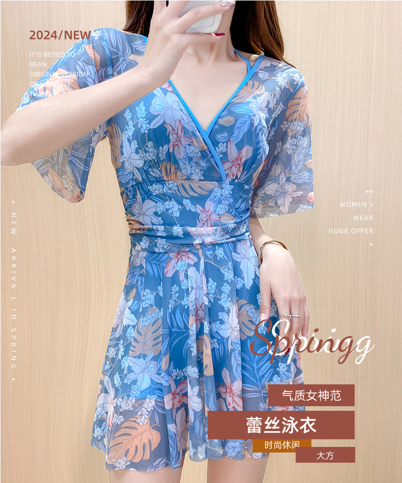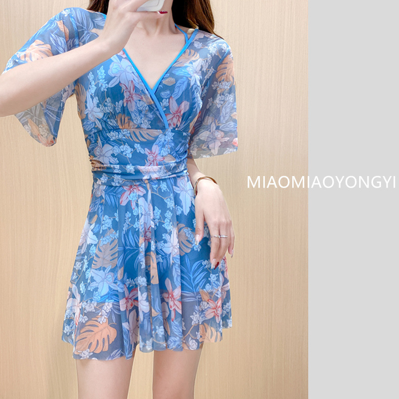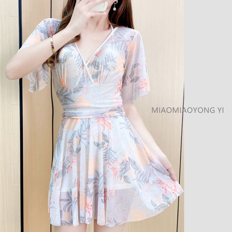 连体游泳衣女保守显瘦遮肚韩国温泉大码裙式温泉度假海边泳装