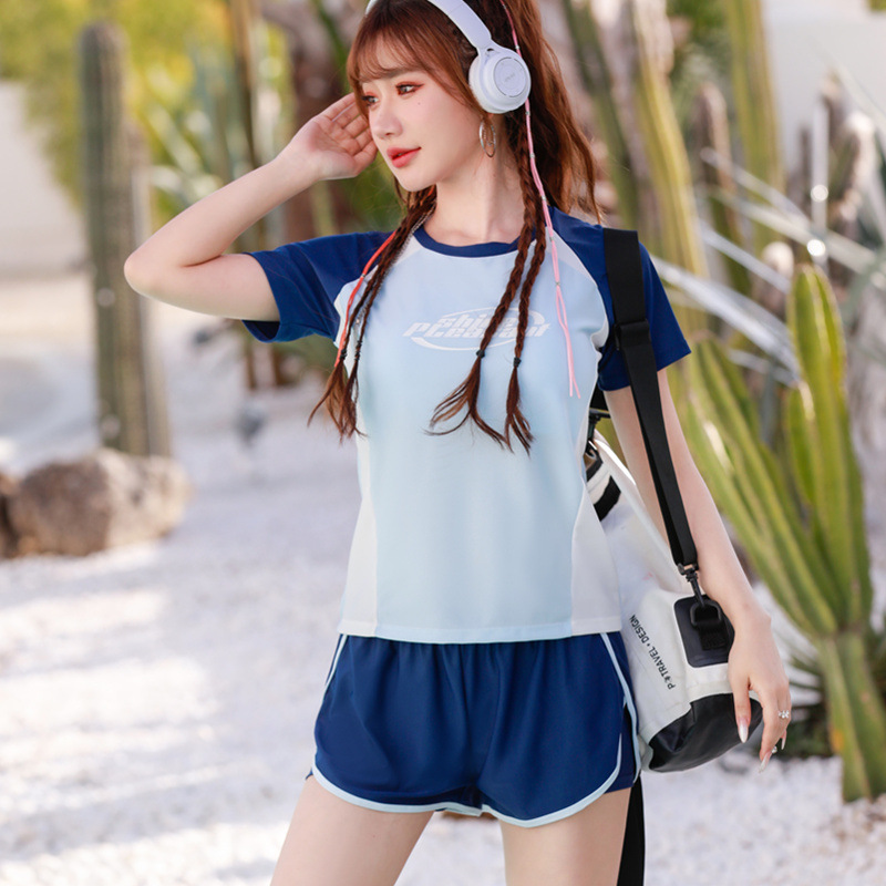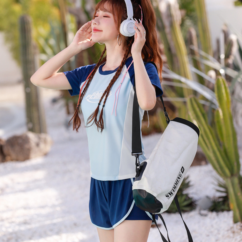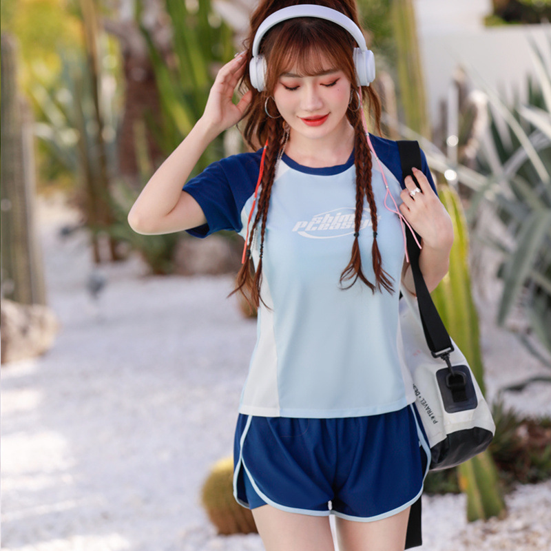运动游泳衣女分体平角保守显瘦遮肚韩两件套少女学生训练温泉泳装