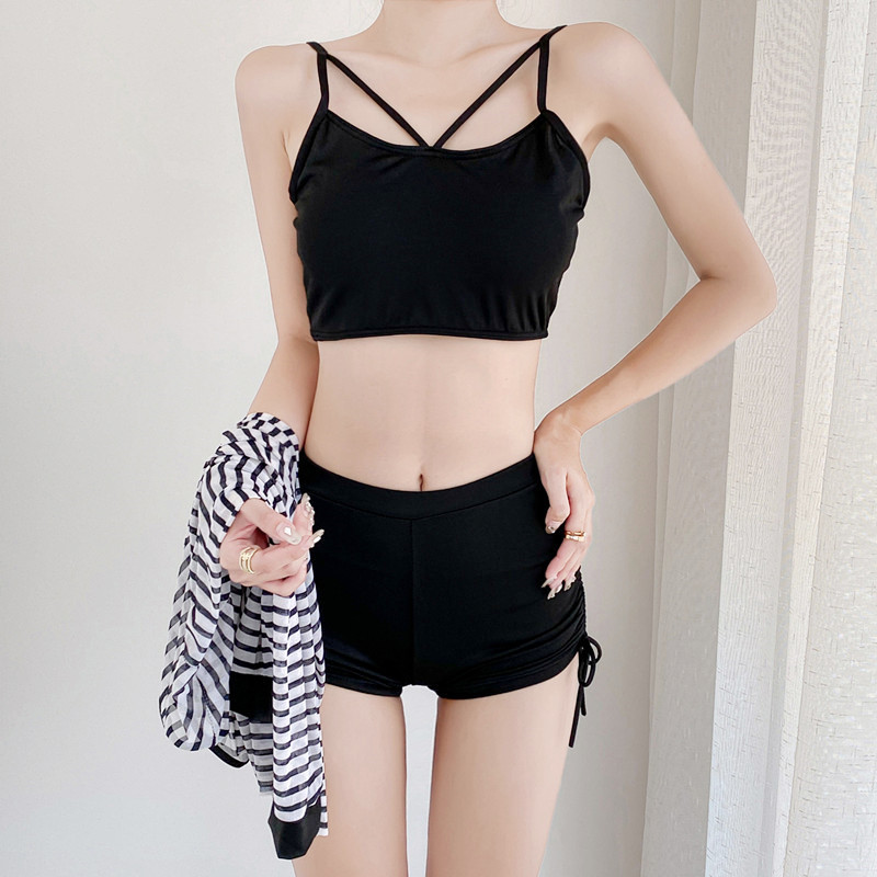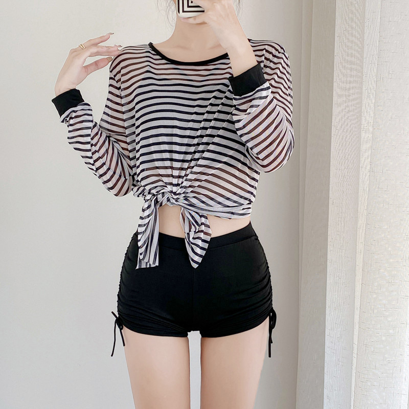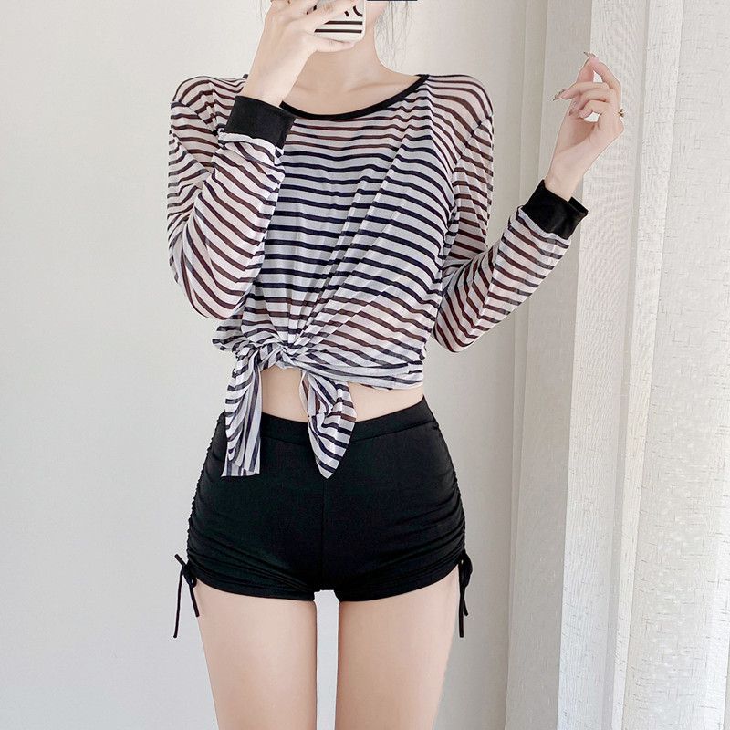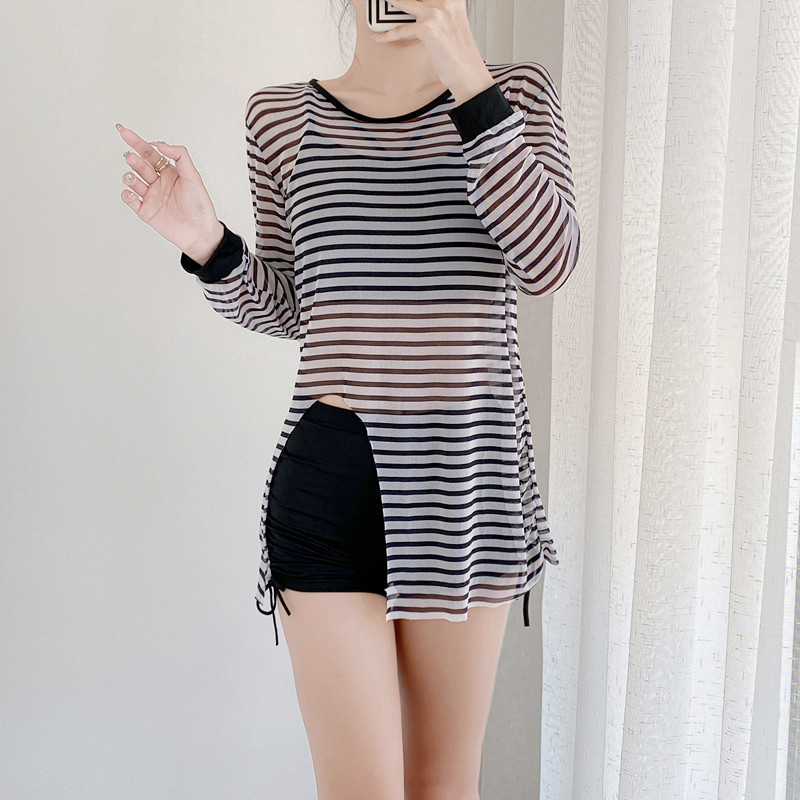 新款泳衣女分体运动三件套保守显瘦遮肚韩国温泉长袖纯欲背心泳装