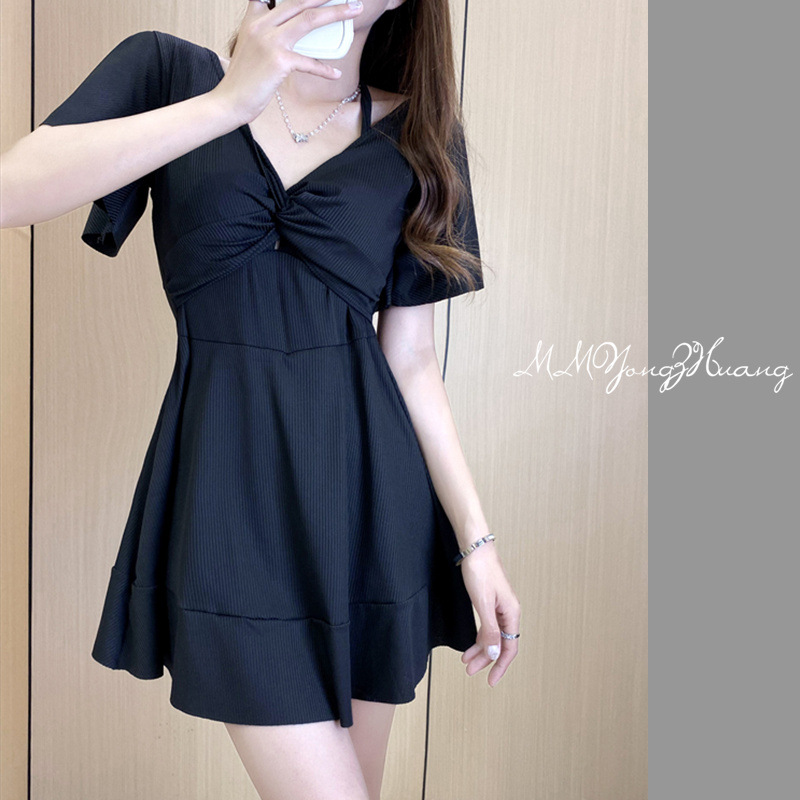 胖妞泳衣女连体平角保守显瘦遮肚韩国性感温泉大码加肥加大码泳装