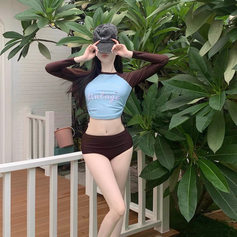 运动游泳衣女bikini比基尼长袖分体遮肚显瘦温泉少女学生日系泳装