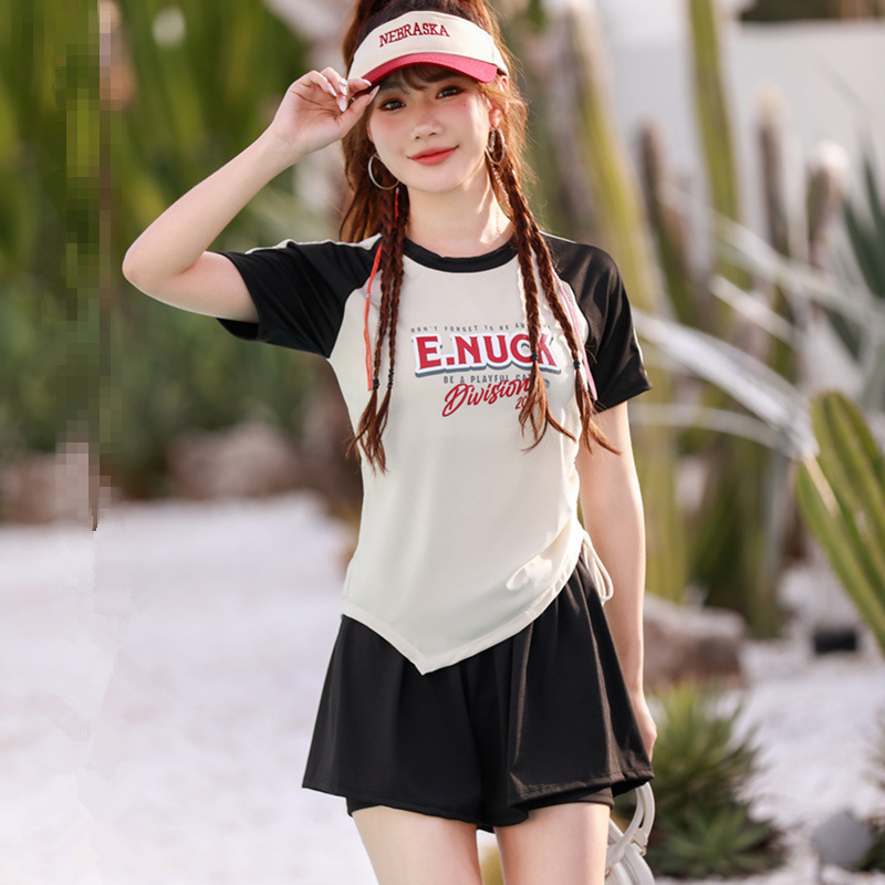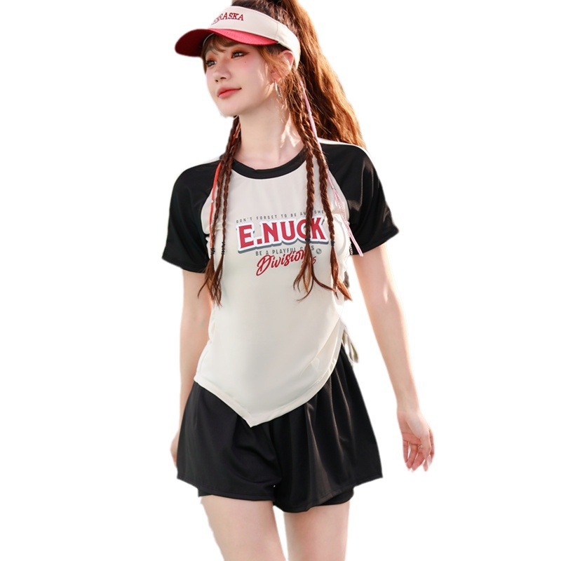 【灵动少女】新款运动泳衣女分体两件套保守显瘦遮肚学生温泉泳装