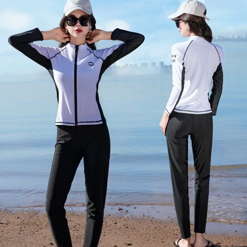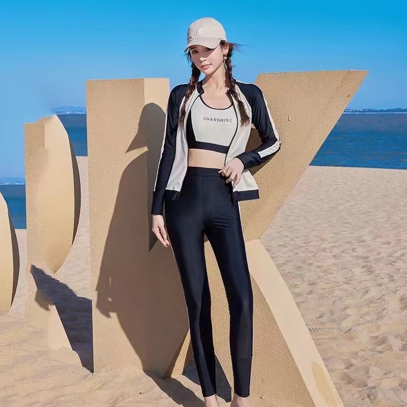 泳衣女分体运动三件套保守长袖防晒潜水服韩国ins风少女海边泳装