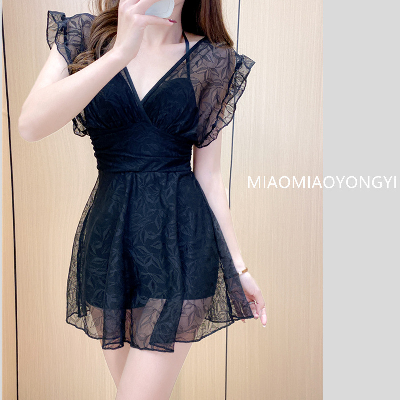【白月光】仙气游泳衣女连体平角韩国性感蕾丝温泉大码裙网红泳装