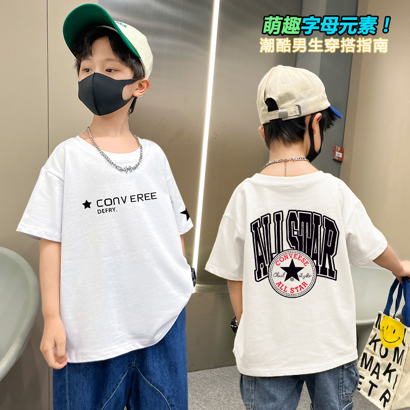 童装男童夏装短袖T恤新款宽松卡通印花儿童男孩夏季服小童INS潮