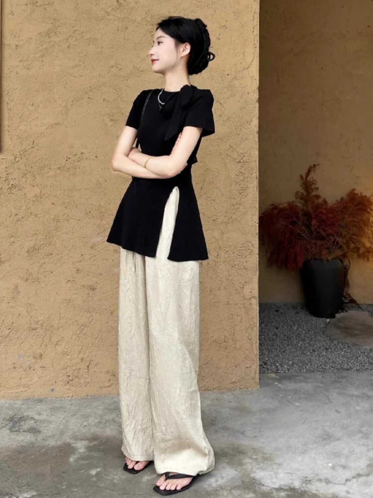 夏装搭配一整套韩系炸街减龄时尚小香风茶系穿搭阔腿裤两件套装女