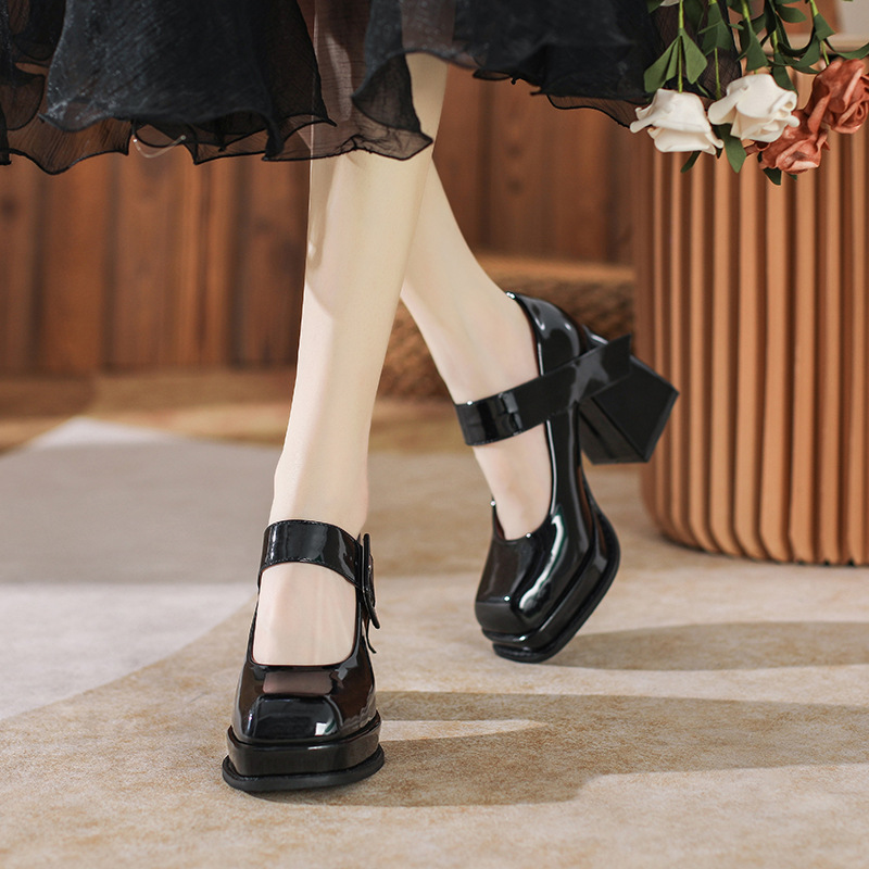 法式气质高级感玛丽珍鞋新款小众设计粗跟黑色方头高跟鞋女鞋