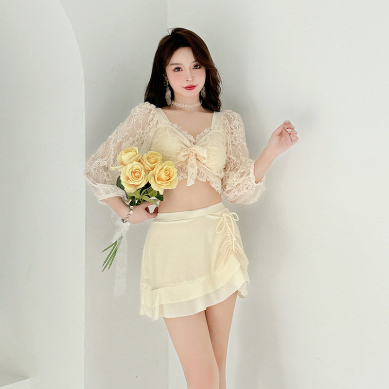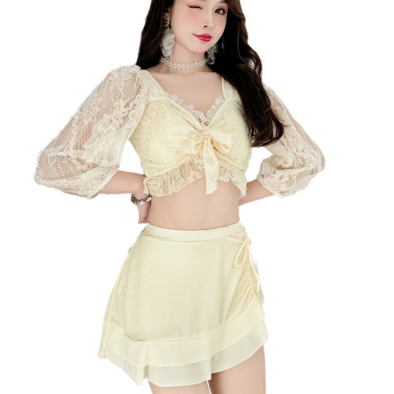 【蕾丝女神】新款仙气泳衣女分体两件套保守显瘦遮肚学生泳装