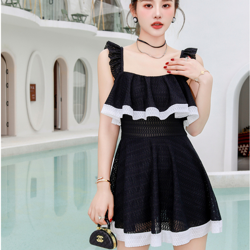仙气游泳衣女新款连体平角保守显瘦遮肚韩版性感温泉学生泳装