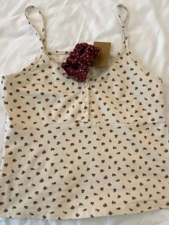 【跨境批发】吊带背心女夏新款甜辣妹短款新款玫瑰花印花辣妹吊带
