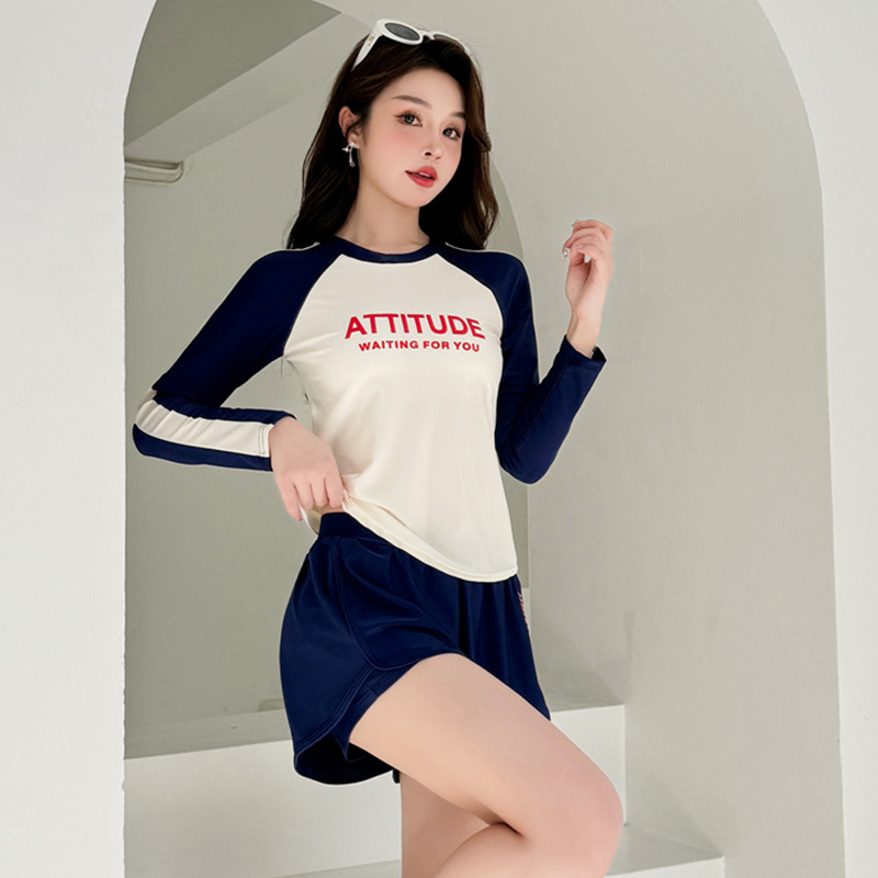 泳衣女保守学生新韩国运动分体裙式平角显瘦遮肚温泉长袖泳装