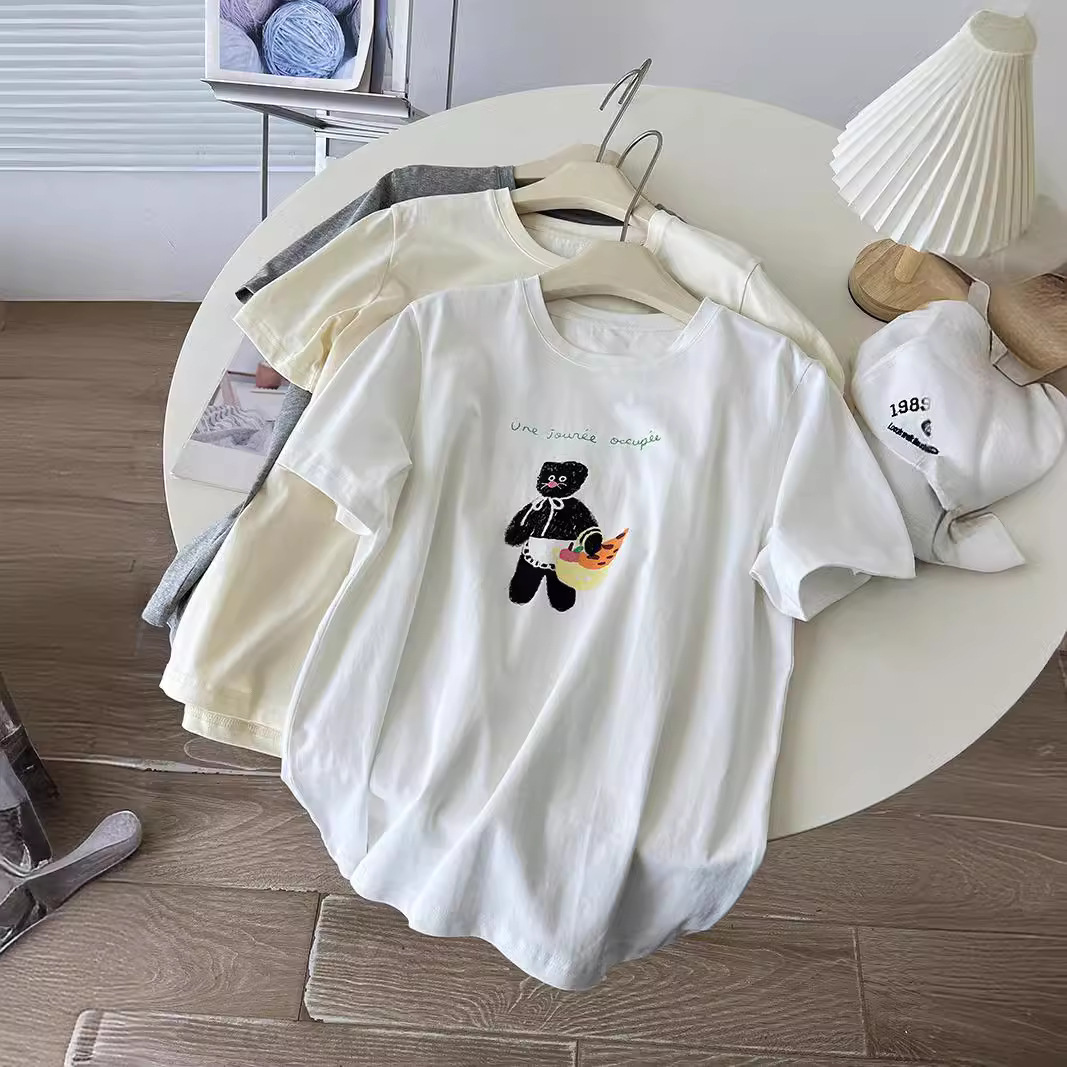 可爱卡通小熊字母印花短袖T恤女夏季新款韩版宽松百搭休闲上衣潮