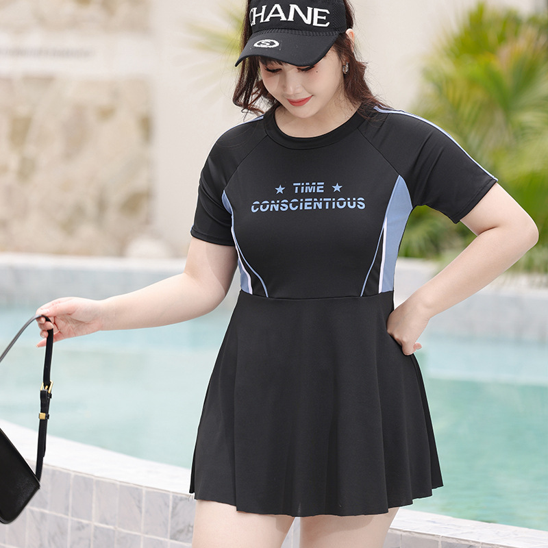 新款游泳衣女加肥加大韩版女温泉保守显瘦遮肚胖妹时尚 泳装