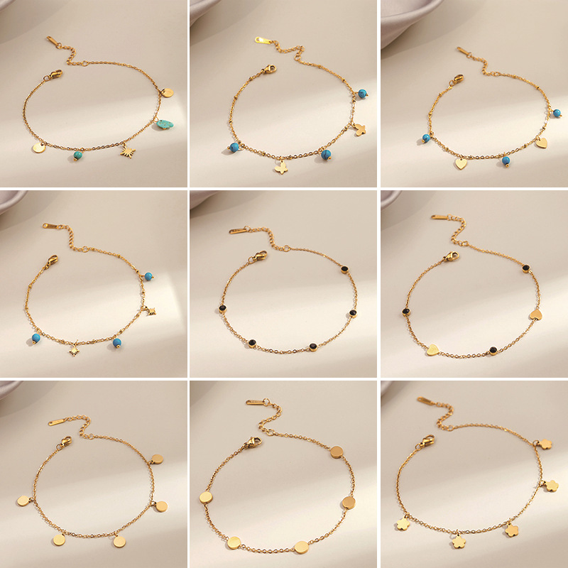 金属感松石几何圆片脚链 八芒星蝴蝶冷淡气质脚饰小众风配饰