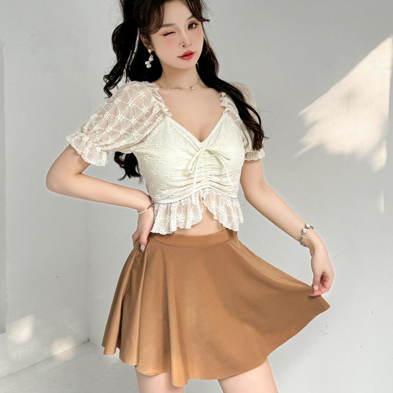 【清丽少女】游泳衣女分体两件套保守显瘦遮肚少女学生温泉游泳装